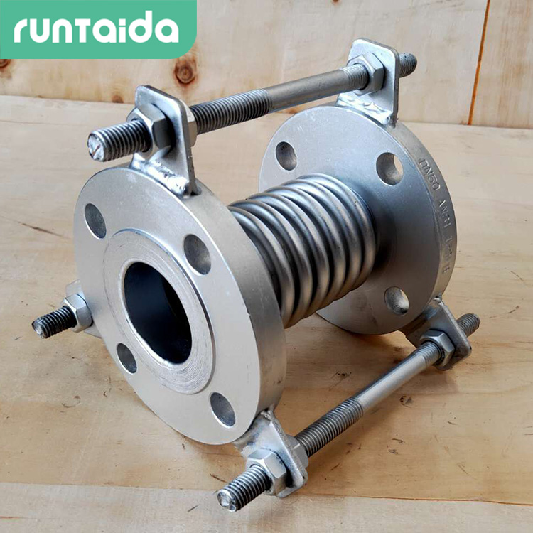 波紋管補(bǔ)償器一般由波紋管和法蘭組成,波紋管常用橡膠、聚四氟乙烯或不銹鋼材料制作。橡膠制作的波紋管補(bǔ)償器只用于溫度壓力比較低的工況,適用介質(zhì)為水、污水和一般腐蝕性物質(zhì);介質(zhì)為強(qiáng)酸強(qiáng)堿類或特別腐蝕管道時(shí),需在波紋內(nèi)增加聚乙烯四氟。